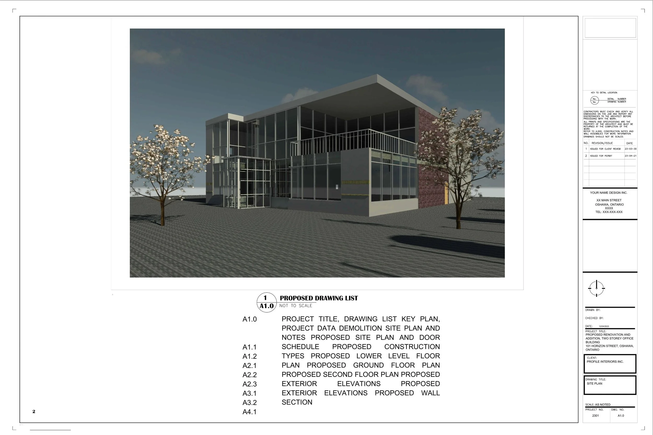 Proposed Renovation and Addition of Two Storey Office Building, 101 Horizon Street, Oshawa, Ontario, Canada.